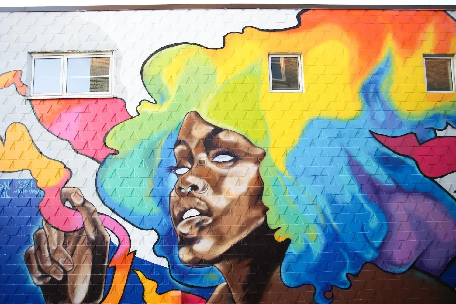 In August 2021, as part of Up Here 7, Black Lives Matter Sudbury presented a mural by DRPN Soul at Medina Lane and Durham Street. The large-scale public artwork contributed to the city’s evolving cultural landscape and centered Black representation within a prominent downtown space.